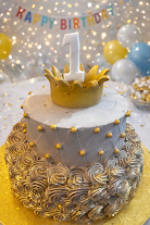 Description:- Make your little one’s first birthday extra special with this charming Teddy Bear Cake! Designed with cute teddy bears, a toy train, stars, caps, and a milk bottle, this cake is perfect for a baby boy’s celebration.