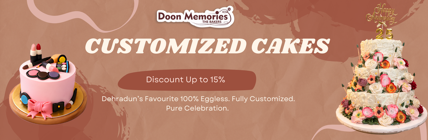 Enjoy the Best 100% eggless, customized cakes in Dehradun at Doon Memories. Our delicious masterpieces, which are made with care and quality, are suitable for any occasion. With our assortment of flavours, patterns, and sizes, you can add a touch of elegance to your celebrations while maintaining pure joy.